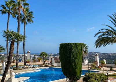 Puebla Aida es una hermosa zona residencial en Mijas Golf construida en estilo andaluz, en una colina con vistas al mar y a las montañas de Mijas. Está diseñada con hermosos jardines y un laberinto de pasarelas, fuentes y cuatro piscinas comunitarias.