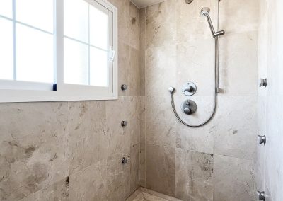 • Un cuarto de baño con una gran ducha a ras de suelo.